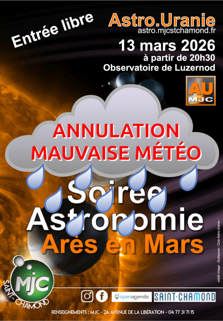 ANNULATION Arès en Mars – soirée d’observation 13 mars 2026 – 20h30